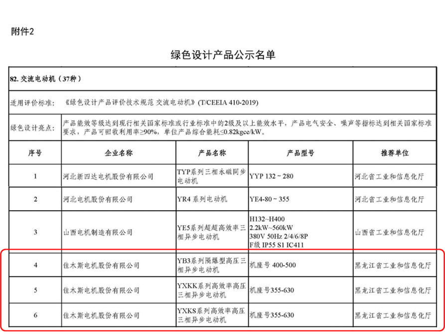 2021年12月, 3个系列高压电机产品获得国家“绿色设计产品”称呼,IE5系列电机机企业产品标准获得国家企业标准“领跑者”称呼,该标准中划定的效率是现在海内最高效节能隔爆型异步电念头产品,效率值凌驾最新的国家能效标准1级指标要求。受此认证,yl23411永利官网股份将被纳入万家用能单位的采购推荐名单,作为绿色电念头产品被勉励优先采购。