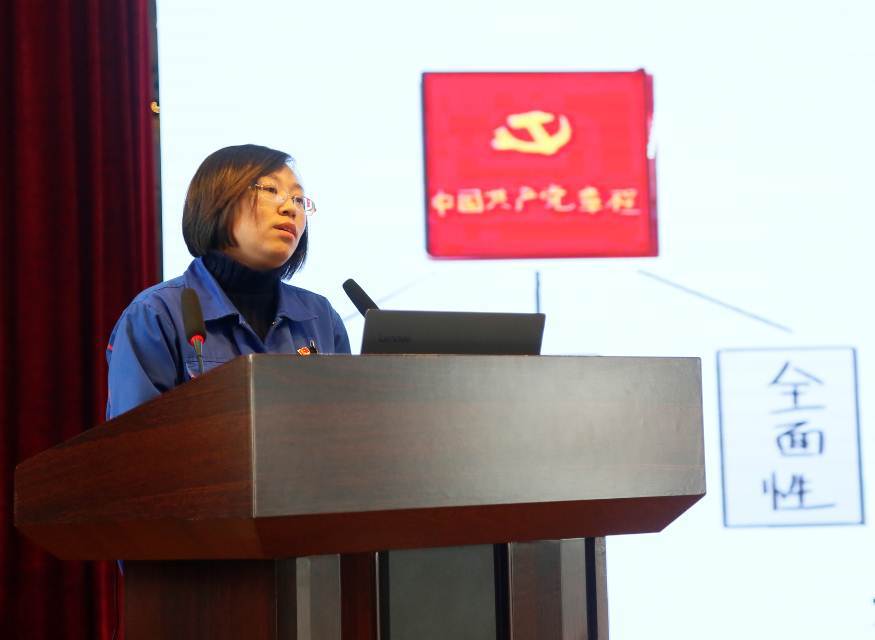 作为“理论学习大课堂”第一期讲座,质量包管部党支部书记张飞飞团结自己学习《党章》的体会,由浅入深,详尽生动,从“党章的职位、作用及生长历程”“总纲解读”“党员、干部、纪律”“党的组织制度及组织机构”四方面临《党章》的主要章节作了认真深入的解读。精彩的讲述,赢得现场听众阵阵掌声。