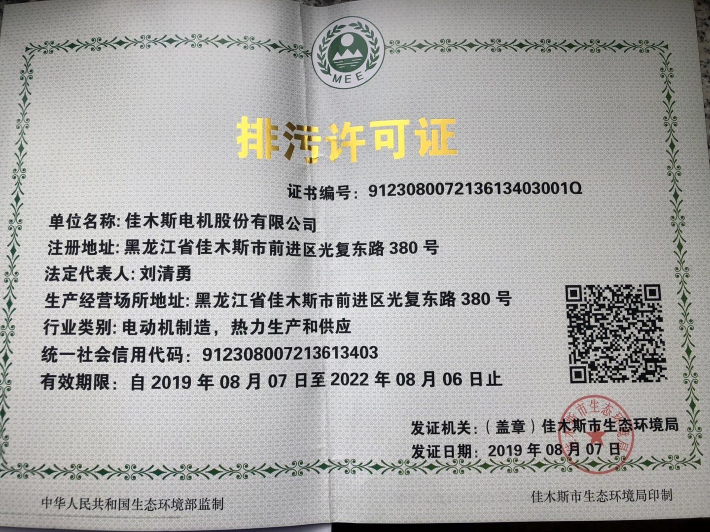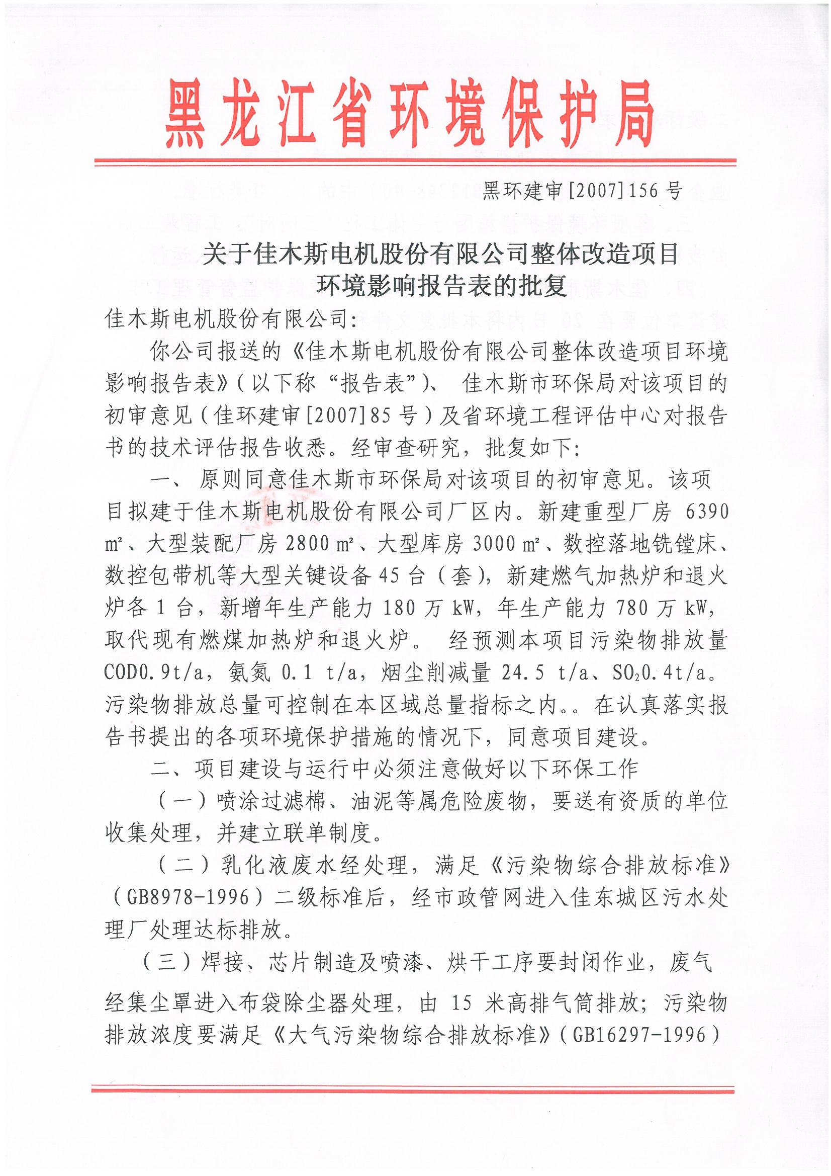 凭证佳木斯市环保局关于企业情形信息果真的要求,现将yl23411永利官网股份公司涉及相关的情形信息举行果真: