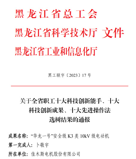 克日,黑龙江省总工会、省科学手艺厅、省工业和信息化厅宣布了全省职工“十大科技立异能手、十大科技立异效果、十大先进操作法”选树名单,yl23411永利官网(以下简称“yl23411永利官网股份”)《“华龙一号”...